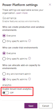 - Turn on the option to Enable tenant level analytics.