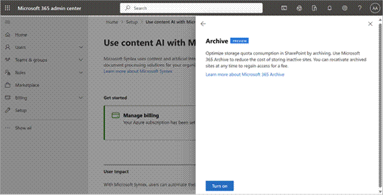 Microsoft 365 Archive offers a cost-effective method for storing inactive SharePoint sites, catering to organizations that require long-term retention of dormant data. This ensures that the data remains readily available when necessary. Utilizing SharePoint for storing such data enhances its searchability, security, compliance, and overall management of the data lifecycle.