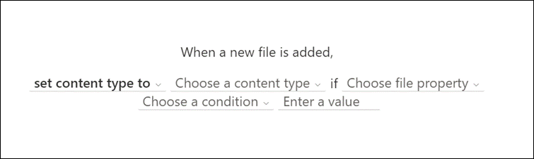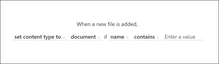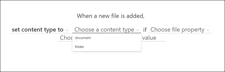 - Under When a new file is added select Choose action, and then set content type to