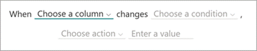 - On the Create a rule page, select Data in a column changes