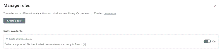 In addition to translating documents manually, you can create a rule to automatically translate a document using the SharePoint Premium Processing Rules feature when:
