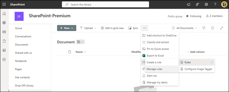 - From a SharePoint document library, select Automate > Rules > Create a rule.
